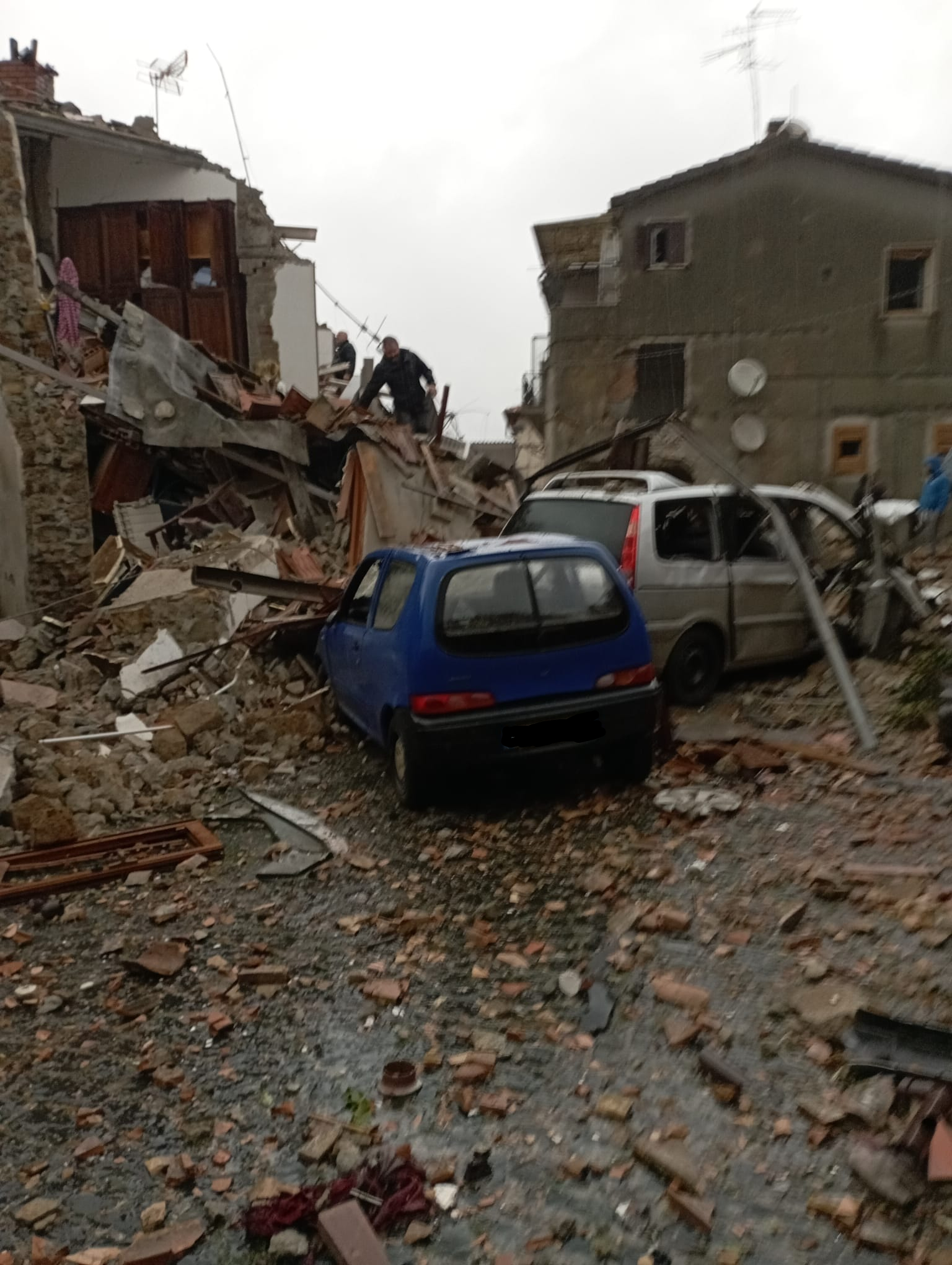 Le immagini diffuse anche via social raccontano di una pesante esplosione avvenuta in pieno centro storico a poca distanza dalla chiesa principale del paese. Santa Maria Assunta in cielo il cui finestrone si è frantumato a seguito della esplosione. La forza della deflagrazione è stata tale che un’auto smart che era in sosta è stata sbalzata di moltissimi metri finendo in prossimità della palazzina di fronte.