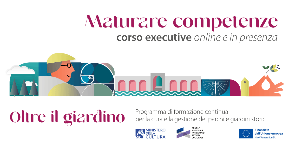 Torna Oltre il Giardino. Maturare competenze, il corso di formazione continua e aggiornamento professionale per la cura e la valorizzazione di parchi e giardini storici, finanziato dall’Unione europea – NextGenerationEU nell’ambito del PNRR Cultura 4.0, Misura M1C3 Investimento 2.3 “Programmi per valorizzare l’identità dei luoghi: parchi e giardini storici”.