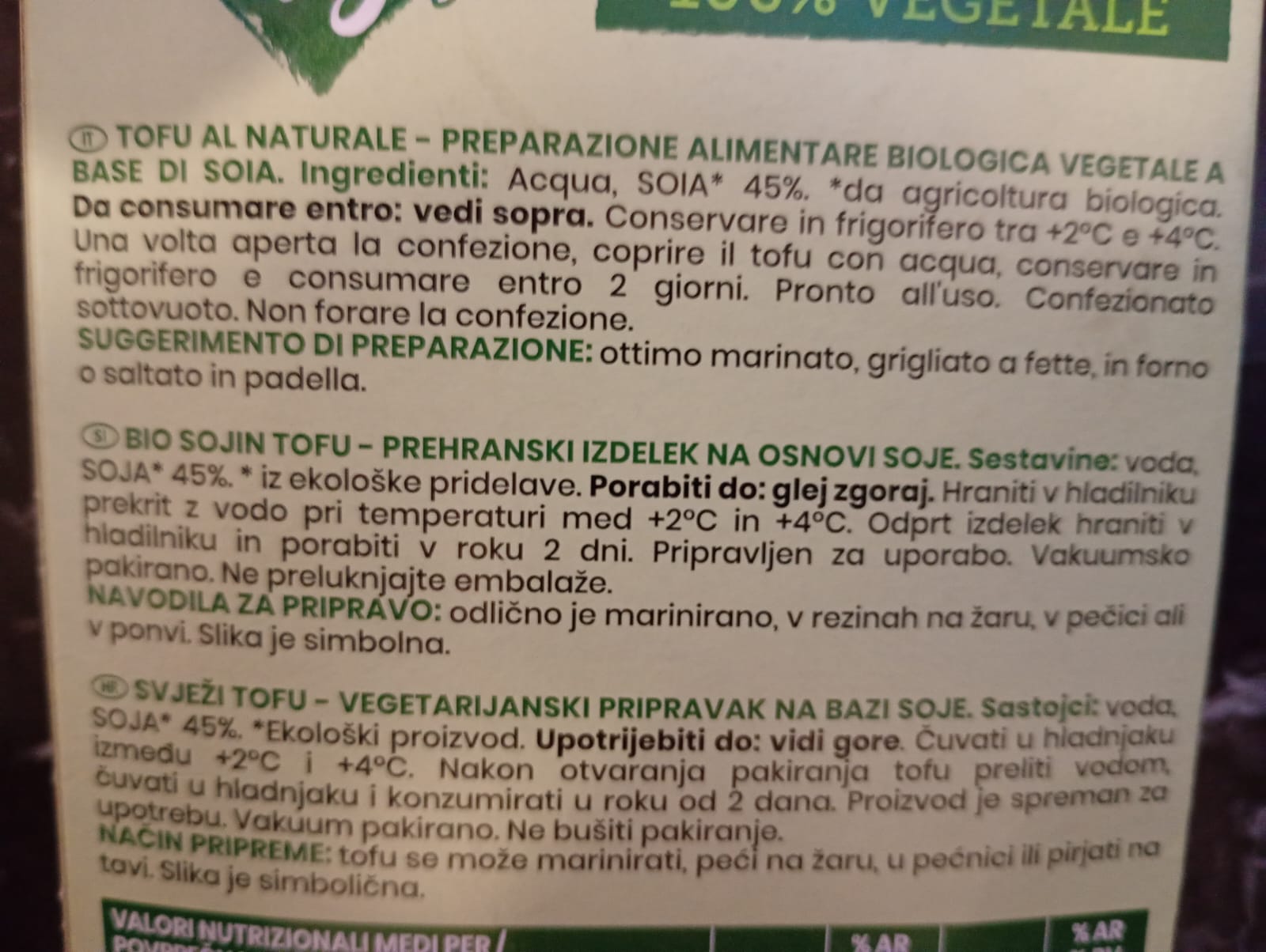 Ed eccoci ad un’altra proposta, una preparazione con un prodotto insolito per la nostra cultura alimentare Italiana: il Tofu naturale, non processato. Proteico vegetale e biologico, preparato con fagioli di soia e acqua.