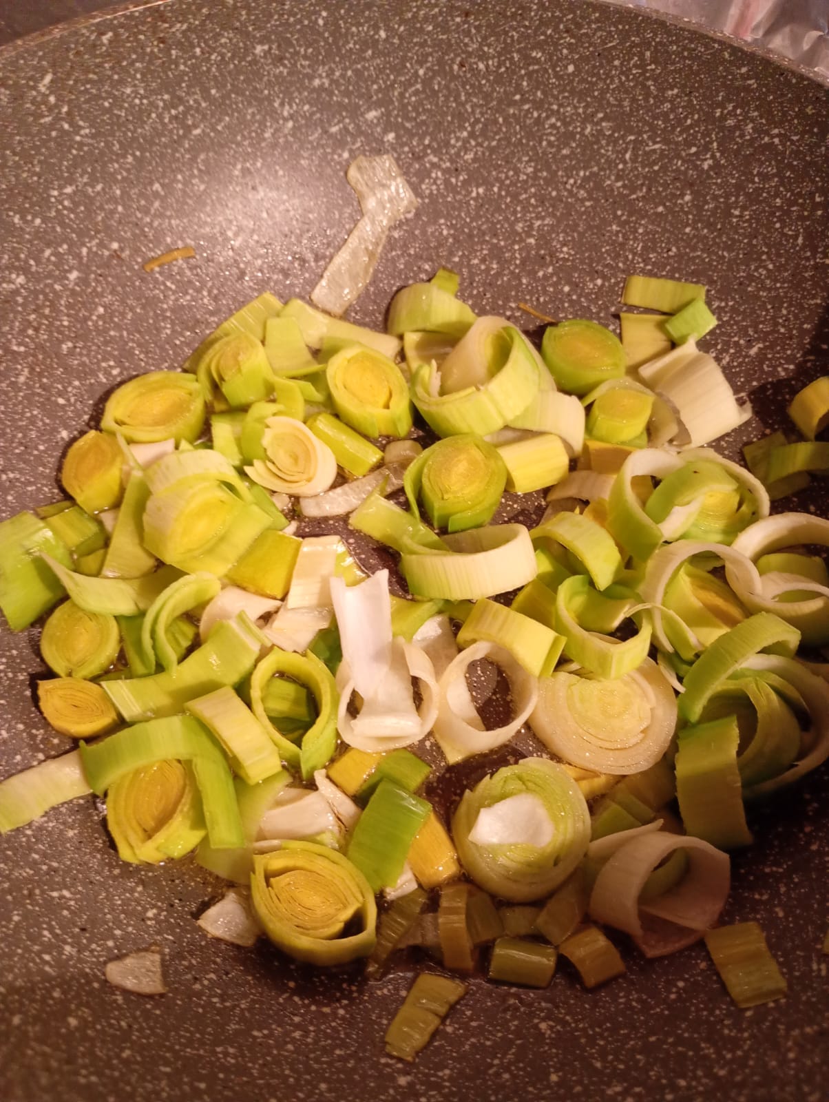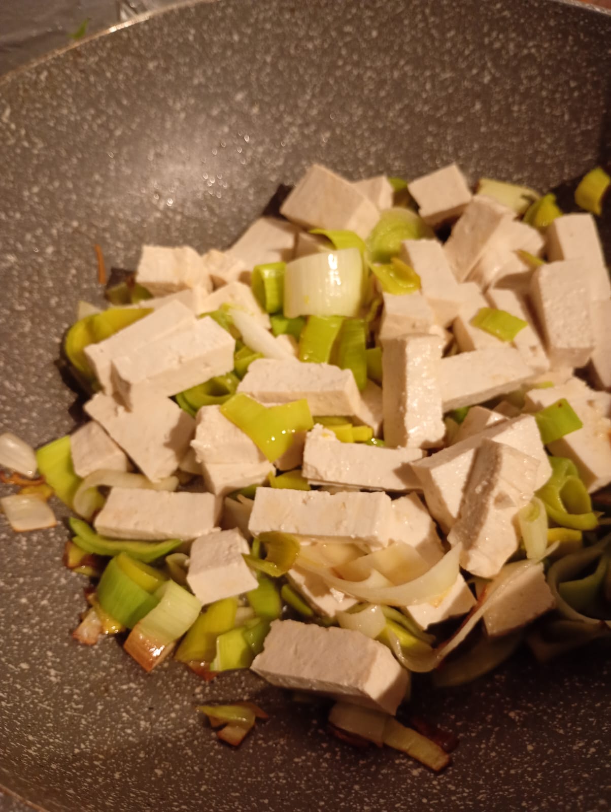 Tofu al porro (ma potete farlo anche con funghi o peperoni).