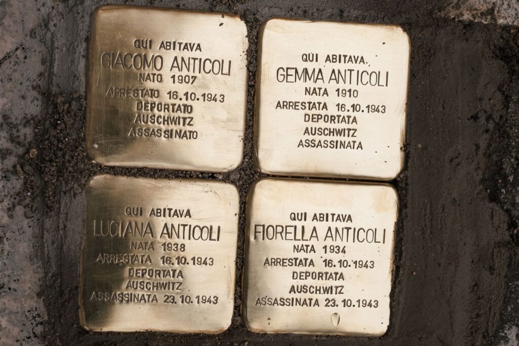 Si è svolta questa mattina, presso la sede centrale del Consiglio nazionale delle ricerche (Cnr) la cerimonia di apposizione di quattro pietre di inciampo in memoria della famiglia Anticoli: Giacomo Anticoli – dipendente dell’Ente che per motivi di servizio dimorava nell’edificio dove ha sede l’amministrazione centrale – la moglie Gemma e le figlie Luciana e Fiorella, che a seguito del rastrellamento del Ghetto di Roma furono deportati ad Auschwitz, senza più fare ritorno. La famiglia Anticoli fu espulsa dal Cnr in conseguenza dell’applicazione delle cosiddette “leggi razziali”.