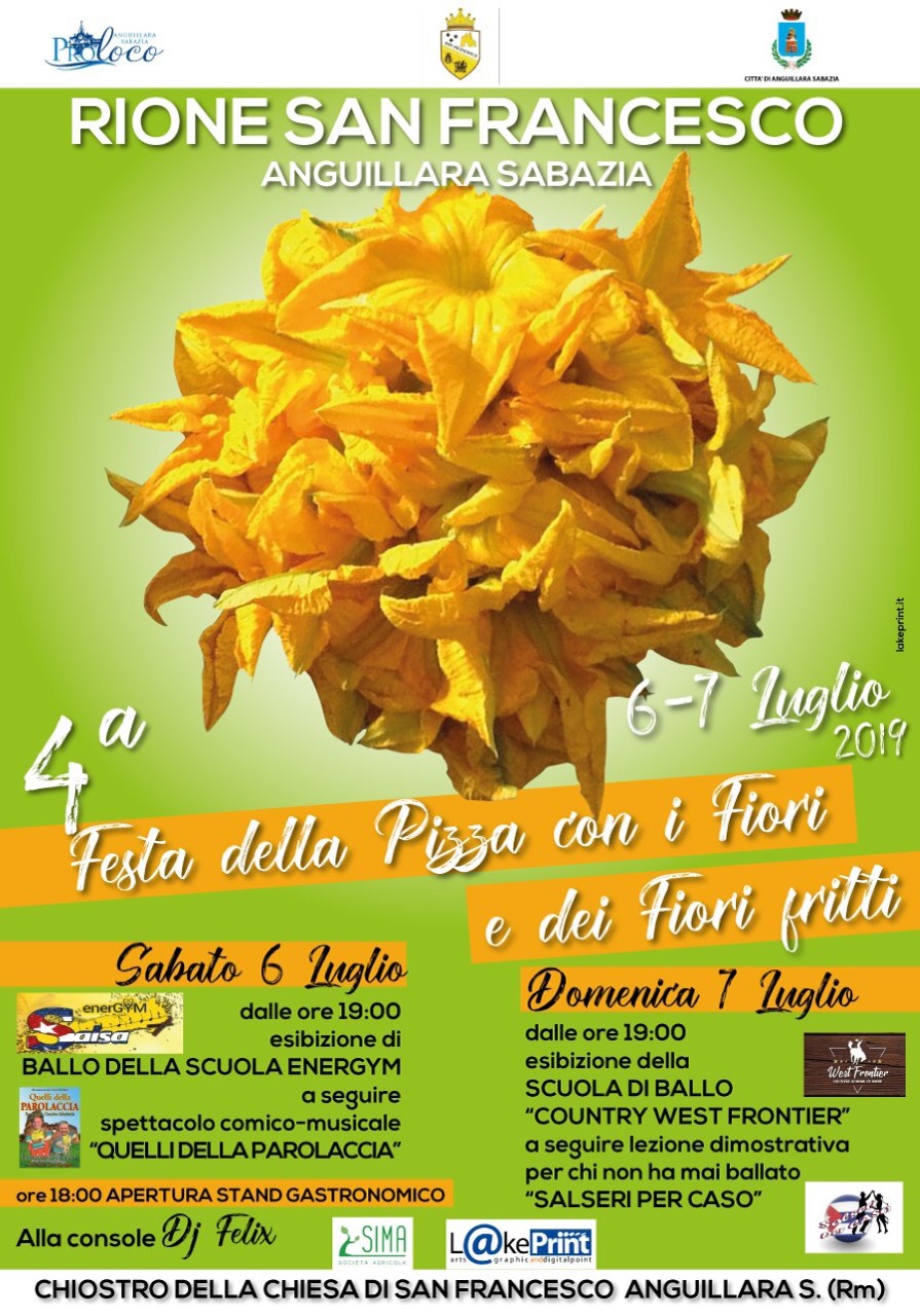 Rione San Francesco in festa ad Anguillara sabato 6 luglio e domenica 7 luglio per la IV edizione della Festa della Pizza con i Fiori e dei Fiori Fritti. Un appuntamento ormai tradizionale che impegna le famiglie biancogialle del Rione e che si tiene proprio accanto alla trecentesca chiesa dedicata al Poverello di Assisi. L’appuntamento enogastronomico ispirato ad un dei cibi tipici della cucina “povera” locale, propone, come sempre, anche momenti di intrattenimento. Da non perdere, per l’edizione 2019, quello con i comici “Quelli della Parolaccia”, gag in romanesco stretto per intrattenere il pubblico sabato sera. La Festa sarà anche l’occasione per scoprire le bellezze della chiesa ex conventuale al quale viene oggi riconosciuto un uso promiscuo. Può ospitare ovvero sia eventi e funzioni religiose che attività culturali. La chiesa per lungo tempo venne adibita a magazzino comunale per poi tornare ad essere uno dei luoghi di maggior pregio del territorio dopo i restauri che hanno interessato non solo la struttura ma anche e soprattutto i pregevoli affreschi tra i quali quelli absidali attribuiti a Domenico Velandi. A presiedere il Rione Pasquale Riccioni che si avvale di una nutrita squadra di volontari tutti accomunati dalla passione biancogialla.