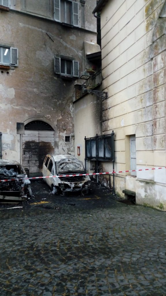 Due auto andate completamente distrutte, una fortemente danneggiata e la facciata del palazzo comunale di Anguillara annerita dal fumo nero. Questo il risultato dell’incendio che è divampato nella tarda serata di ieri ad Anguillara in piazza del Comune. In fase di accertamento le cause. Tempestivo l’intervento dei vigili del fuoco di Bracciano che ha consentito di circoscrive le fiamme scongiurando conseguenze più gravi alle abitazioni e alle strutture architettoniche tra le quali la storica porta realizzata nel 1584 da Giacomo del Duca su commissione di Paolo Giordano Orsini e lo stesso palazzo baronale Orsini sede del Municipio. Le fiamme hanno interessato tre auto parcheggiate nella piazza dove da anni vige il divieto di sosta. Significative in quanto ai danni le fotografie. Fortunatamente non si registrano feriti. La squadra dei vigili del fuoco di Bracciano è intervenuta sul posto alle 23.45 circa e hanno provveduto a spegnere le fiamme delle tre auto parcheggiate proprio sotto il palazzo comunale. Il fatto riporta alla ribalta le annose polemiche sull’accesso alle auto nel borgo storico di Anguillara. Un nodo mai risolto. Di recente inoltre almeno un posto auto è riservato alla polizia municipale i cui uffici sono collocati sulla stessa piazza in locali affianco alla porta già sede storica della biblioteca comunale poi trasferita in nuovi spazi.