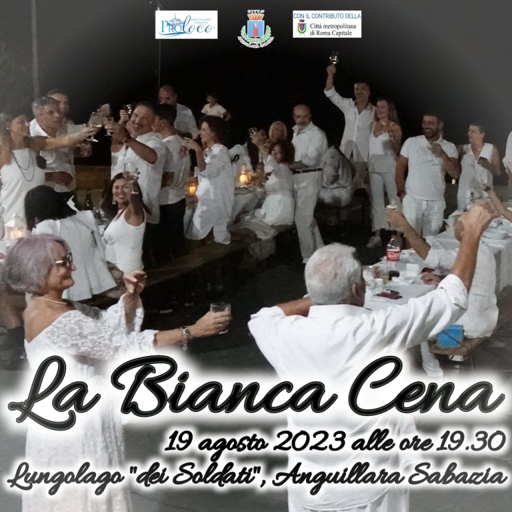 ll Comune di Anguillara Sabazia e la Proloco invitano tutti a realizzare insieme la “BIANCA CENA” il 19 agosto 2023, alle 19.30, presso il lungolago “dei Soldati”. Si tratta di una cena all’aperto negli spazi pubblici comunali, nel quale famiglie, amici, concittadini imbandiscono assieme la propria tavola portando belle stoviglie e buon cibo, per vivere un’occasione di socialità all’insegna della bellezza e della convivialità, del rispetto e della condivisione.