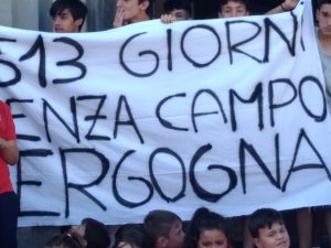 La protesta è pacifica. Fin troppo. Aspettando il futuro: un bando da revocare, un campo da calcio e dei palazzetti dello sport da riaprire. Aspettando, aspettando…