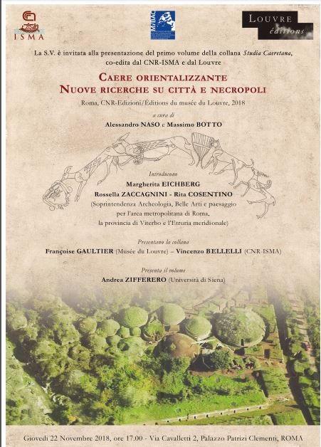 Il volume “Caere Orientalizzante. Nuove ricerche su città e necropoli”, è il primo di una nuova collana archeologica –STUDIA CAERETANA- interamente dedicata all’antica città etrusca di Caere (Cerveteri). La collana è frutto della collaborazione del CNR ISMA e del Musée du Louvre, due enti che vantano una lunga e consolidata esperienza di studi e ricerche sulla grande metropoli etrusca.
