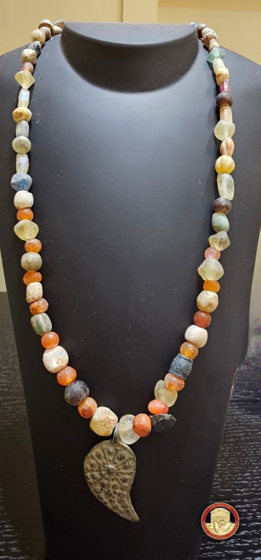 • il recupero di un’antica collana composta da pietre semipreziose in vetro, pasta di cristallo e ambra, risalenti al I sec. a.C. – III sec. d.C., depredate dai siti archeologici ucraini ed in particolare nelle necropoli ubicate in quel territorio, come il cimitero della tarda scita Chervonyi Maiak, individuato presso l’abitazione di un collezionista toscano, nell’ambito di perquisizioni delegate dalla Procura della Repubblica presso il Tribunale di Firenze. Il dissequestro del manufatto, importante testimonianza delle origini e dell’identità del popolo ucraino, di comprovato interesse storico culturale, disposto dal Tribunale di Firenze con sentenza del 14.10.2022, divenuta irrevocabile il 28.02.2023, ha permesso la restituzione dell’antico monile, che verrà ricondotto in patria ove potrà essere oggetto di studio e fruizione da parte del pubblico.