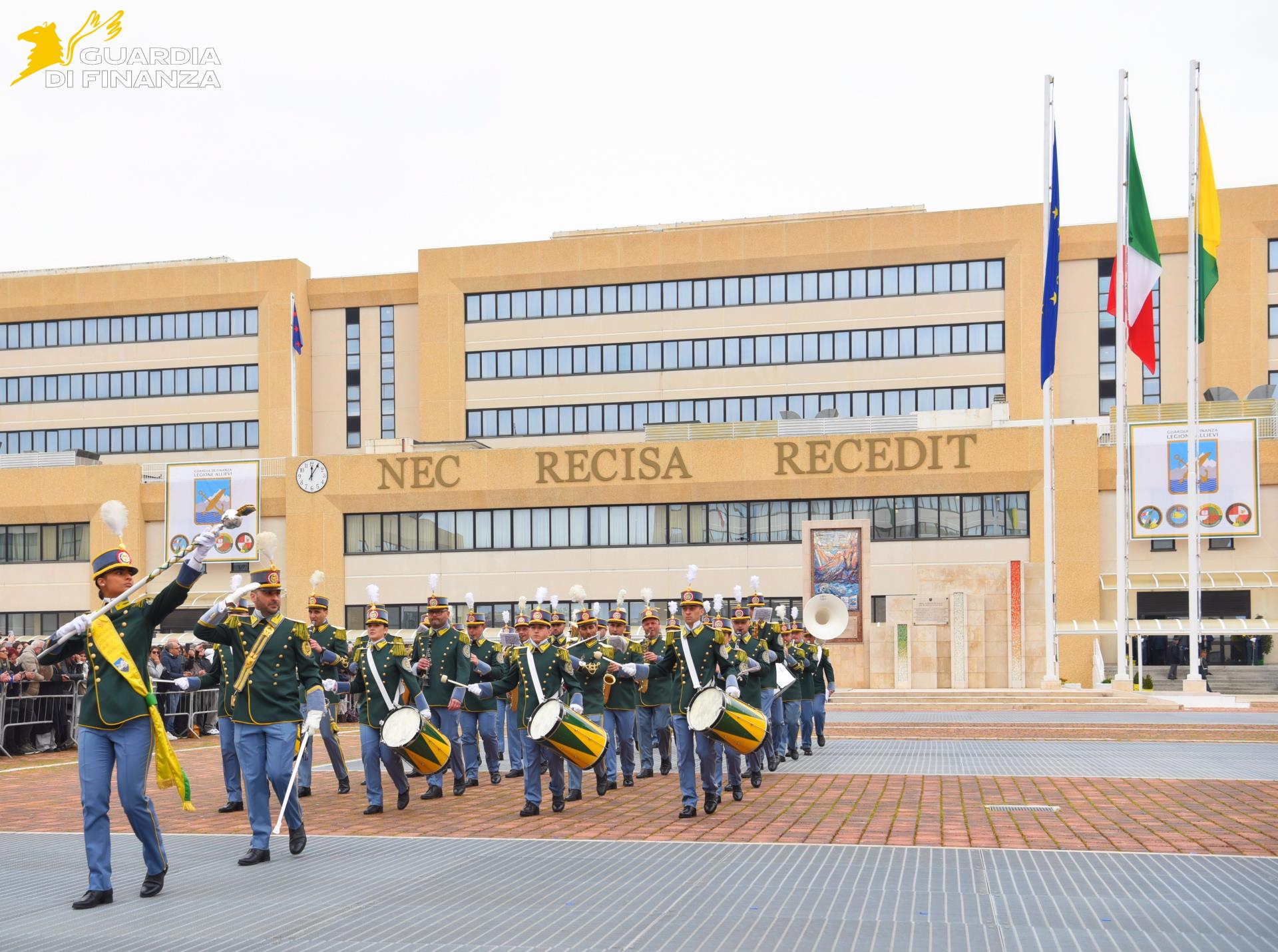 A seguire, con le compagnie schierate, il Maresciallo Sabrina Russo e l’allievo finanziere Sara Frezzan accompagnati dalla Fanfara della Legione Allievi hanno intonato la preghiera del Finanziere, creando un momento di grande coinvolgimento emotivo.