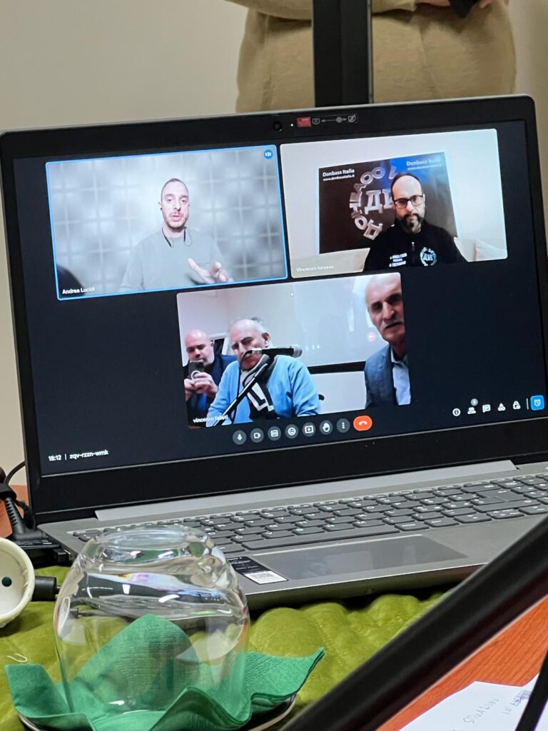 Tra i relatori dell’incontro, Vito Grittani che ha salutato il pubblico a nome del dottor Kan Taniya, ambasciatore presso della Repubblica dell’Abkhazia, che purtroppo non ha potuto collegarsi in remoto per motivi di salute, Pasquale Salatino, editore e, da remoto, Andrea Lucidi, reporter in Donbass e Vincenzo Lorusso, reporter di Donbass Italia. Questi ultimi, nei loro interventi, hanno illustrato al pubblico intervenuto le tante questioni che hanno riguardato la pubblicazione del film Il Testimone.