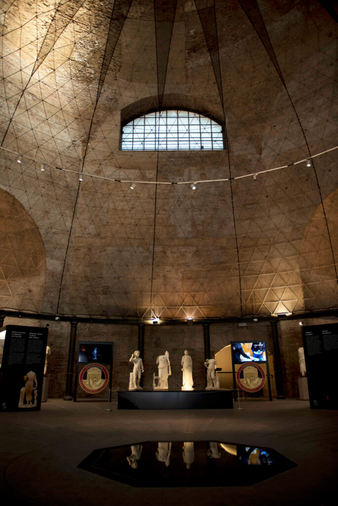 L’allestimento, da subito pensato per rimodulare continuamente lo spazio espositivo all’interno della grande Aula, al fine di ospitare ed esporre opere e reperti sempre diversi, accoglie da oggi e fino all’11 gennaio 2026 un nucleo di 11 nuove sculture, rinvenute a Roma, tra il 1937 e il 1945, presso villa Grandi a Porta Latina e da sempre conservate nei depositi del Museo.