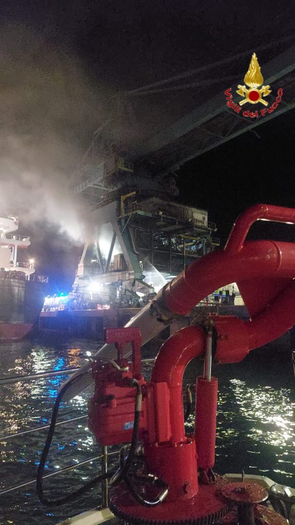 E’ in corso un incendio di un nastro trasportatore del carbone all’interno di Torre Valdaliga Nord. Sul posto sono accorsi la 17A l’auto botte AB17 autoscala AS17 e gli specialisti Nautici con la motobarca VFR12. Un rimorchiatore sta per trainare la nave che scarica il carbone lontano dal molo e la squadra di terra della Bonifazi si sta occupando dello spegnimento del nastro trasportatore. Attorno alle 23.30, dopo due ore di intenso lavoro, i vigili del fuoco di Civitavecchia sono riusciti a domare le fiamme evitando che l’incendio si propagasse ad aree limitrofe con danni di gran lunga maggiori. Si è poi immediatamente proceduto alle opere di bonifica e messa in sicurezza della zona interessata dalle fiamme.