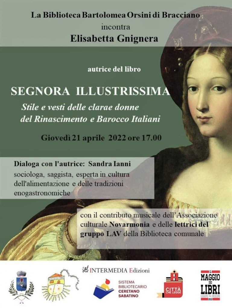 Il 21 aprile alla Biblioteca di Bracciano presentazione de “Segnora illustrissima,stile e vesti delle clarae donne del Rinascimento e del Barocco italiani”