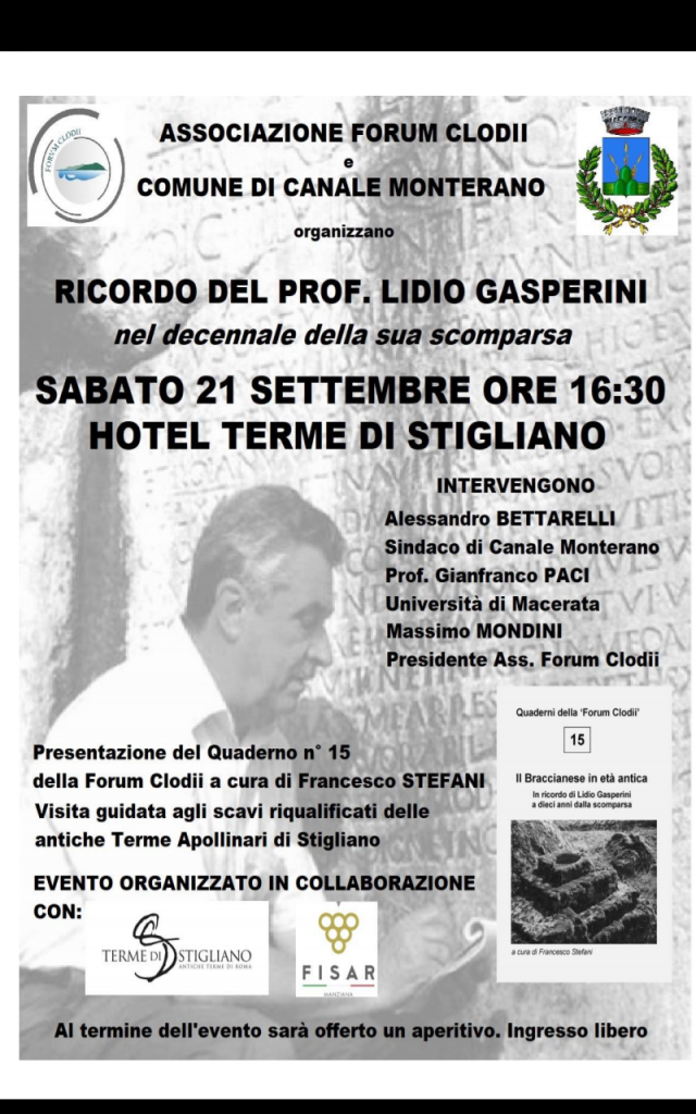 Il 21 settembre a Stigliano Forum Clodii ricorda Lidio Gasperini