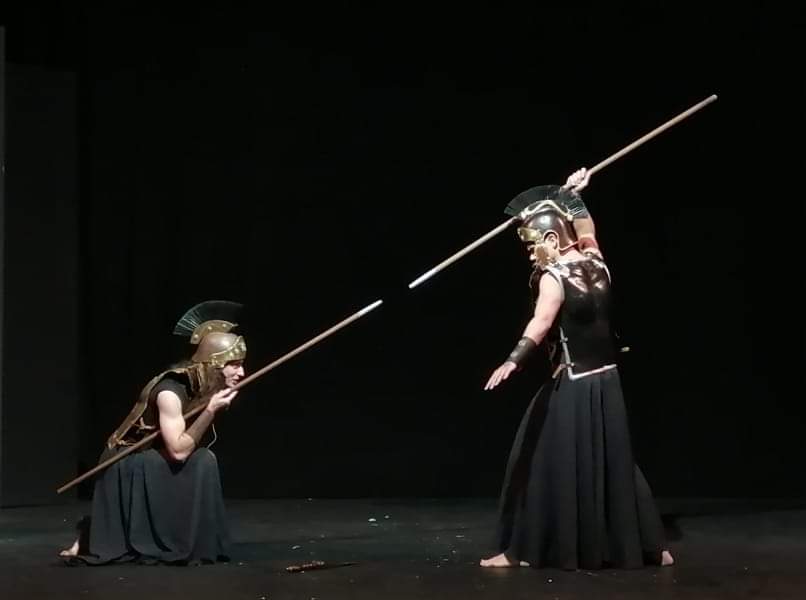 Omero rivive in tutta la sua epicità nei versi tradotti dall’arcadico Vincenzo Monti (1754-1828) e portati in scena a Canale Monterano per la regia di Esper Russo. Il duello per eccellenza rivive negli occhi e nelle carni di questi due “eroi” contrapposti, accomunati dal destino. Dopo la morte di Patroclo, amico del pelide, la vicenda è segnata. Uno di loro perirà. Con efficacia Russo realizza al teatro Maurizio Fiorani per la prima assoluta del 9 aprile scorso una scena essenziale che ritrae l’uno e l’altro nel chiuso delle proprie tende alla vigilia della contesa. Una ricostruzione semplice ad effetto che, grazie a costumi e luci azzeccate, mostra la muscolarità dei due eroi antagonisti. Nella tenzone che inesorabile segue la sfida diventerà anche verbale, un dialogo serrato ed interposto da scoccate di lancia, da cadute e da rialzate. Tutto fino al colpo finale che uccide Ettore. Ma nel trapasso del troiano la pièce Ettore e Achille. Il duello malinconico del viver breve innova rispetto al testo di Omero e subentrano nuovi toccanti dialoghi questa volta frutto della visione filosofica dello stesso regista Esper Russo. I due eroi sono messi a confronto l’uomo di fronte all’altro nel momento della morte. Ognuno accetta la propria condizione, il proprio vissuto, il proprio destino. E’ un finale che guarda allo stoicismo, all’accettazione degli eventi. Un messaggio ribadito dallo stesso regista russo. Un’opera teatrale e coraggiosa che si regge, oltre che sul testo, sulla bravura dei due interpreti, Leonardo Silla per Achille e Archita Giuseppe Russo per Ettore. Ruoli impegnativi che hanno richiesto un grande studio e un grande lavoro di interpretazione per calarsi in due personaggi senza tempo. I due attori hanno dato voce e carne ad un mito intramontabile e il messaggio di Russo sul finale fa riflettere una volta che il sipario si chiude e gli applausi accolgono per il giusto tributo i due giovani e bravi attori.