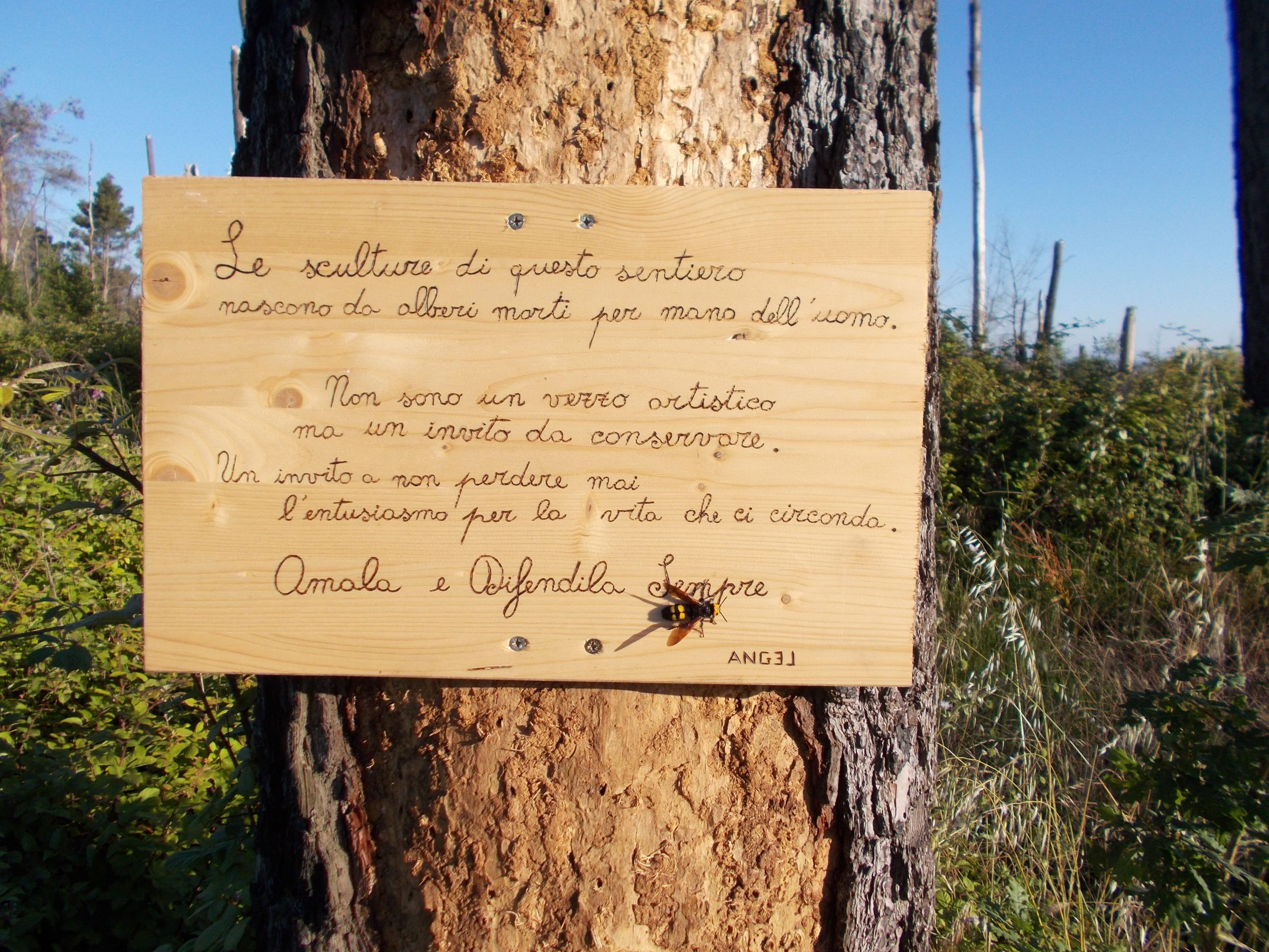 Tra i ruderi degli alberi caduti opera in solitaria un artista d’eccezione che unisce la passione per la musica a quella dell’arte. Sta prendendo forma così a poco a poco DEUS SIVE NATURA un progetto di sensibilizzazione di salvaguardia ambientale di Gian Michele Montanaro in arte ANGEL. A fare da testimoni in un messaggio di sicura valenza gli animali stessi che questi ambienti popolano: gufi, rospi, scoiattoli, serpenti ed altri.