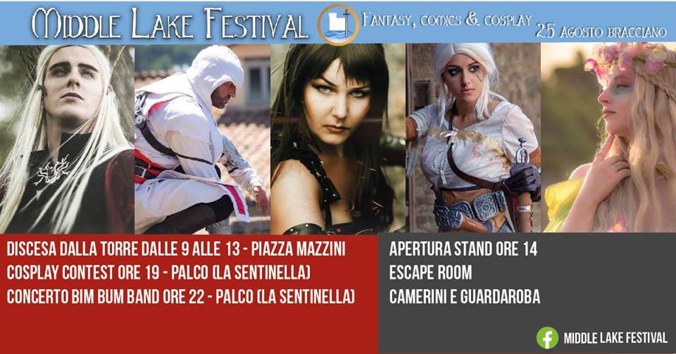 Centro storico di Bracciano oggi meta di cosplayers provenienti da tutta Italia per l’evento fantasy del Middle Lake Festival. Il castello e l’atmosfera da borgo medievale ne fanno il teatro ideale per ospitare elfi, fate e guerrieri. Tra i vicoli e nelle piazze per tutta la giornata si potranno trovare stand, attività, presentazioni libri e tanto altro. Da non perdere la possibilità di provare l’ebbrezza della discesa in corda dalla Torre del castello fino alle 12. Sempre nel magnifico scenario del castello Orsini-Odescalchi avrà luogo l’imperdibile #cosplay #contest del Middle Lake Festival prima Edizione. La gara inizierà alle 19. Regolamento ed iscrizioni al link: docdro.id/nJYwaFh Ecco i premi previsti: Miglior Cosplayer Singolo; Miglior Cosplay di Gruppo; Premio Speciale Middle Lake Festival; Premio DegrArt by #Peressuina. A fare da giuria abili artigiani cosplay, amanti del fantasy, esperti di: sartoria, armature, parrucche, make up. Tra i giurati anche Fuinur Croft, Luce Cosplay, Bibix Cosplay Rikylicius Cosplay, Francesco Capomaggi. Il programma prevede inoltre dalle 10:00-13:00 lo Spettacolo delle Sirenette, alle 10:30 il Giro in Dragon Boat per i Cosplayers, alle 14:00 l’apertura stand e attività Ludiche. A disposizione di tutti i partecipanti ci sarà una navetta diretta alle location speciali per gli #shooting. Saranno presenti: camerini cosplay e guardaroba, zone make-up, set fotografici, pass per il Ristoro convenzionato. La giornata sarà piena di tante altre sorprese, tra giochi, musica, sfilate e tanto altro. In serata, alla Sentinella, la Bim Bum Band sarà presente a questo festival molto suggestivo, con le più belle sigle dei cartoni animati. Con questo evento i cosplayers tornano sul lago. Un evento a loro dedicato, con un contest cosplay dedicato al Giappone, era stato organizzato il 10 luglio 2016 nell’ambito della manifestazione Bracciano.CO, promosso dal Consorzio Lago di Bracciano e dall’Associazione Turismo Lago di Bracciano, in occasione dei 150 anni delle relazioni diplomatiche tra Italia e Giappone. I manga costituiscono infatti uno dei “prodotti” più apprezzati nel mondo della cultura nipponica.