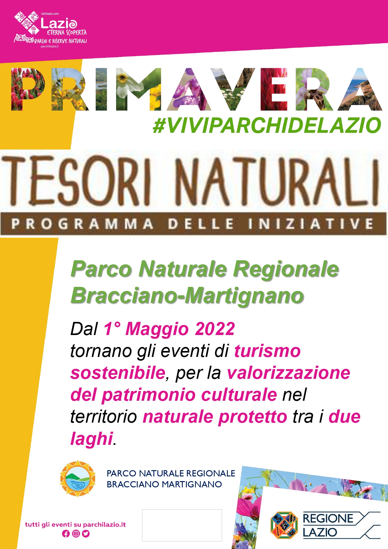 Con Tesori naturali, tornano gli eventi itineranti alla scoperta del Parco Naturale Regionale Bracciano-Martignano. Per il quinto anno consecutivo, dal 1° Maggio e fino a Dicembre 2022, ci sarà la possibilità di partecipare al programma promosso dalla Regione Lazio nell’ambito del progetto regionale Giorni Verdi – Vivi i Parchi del Lazio.