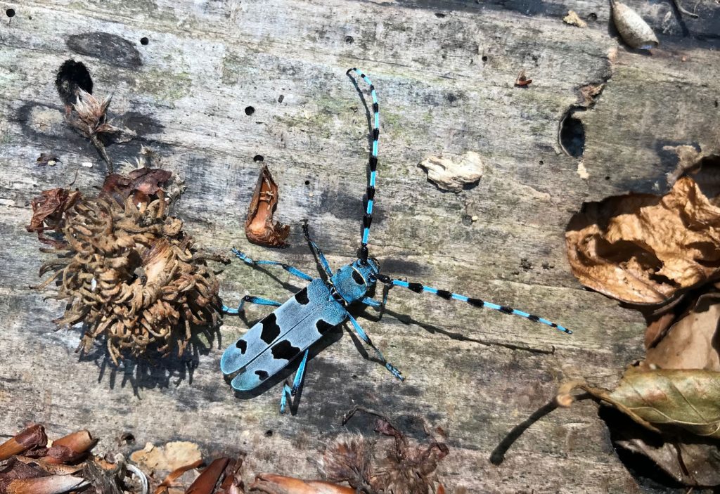 Nel corso di un sondaggio esplorativo effettuato il 21 agosto nell’ambito del progetto Life InNat presso la Faggeta di Monte Raschio ad Oriolo Romano, (recentemente riconosciuta dall’UNESCO come Patrimonio dell’Umanità), un gruppo di tecnici, guardiaparco e stagisti del Parco ha individuato un esemplare vivo di Rosalia alpina, un raro coleottero di colore azzurro cenere, la cui precedente segnalazione in zona risaliva a quasi cento anni fa.
