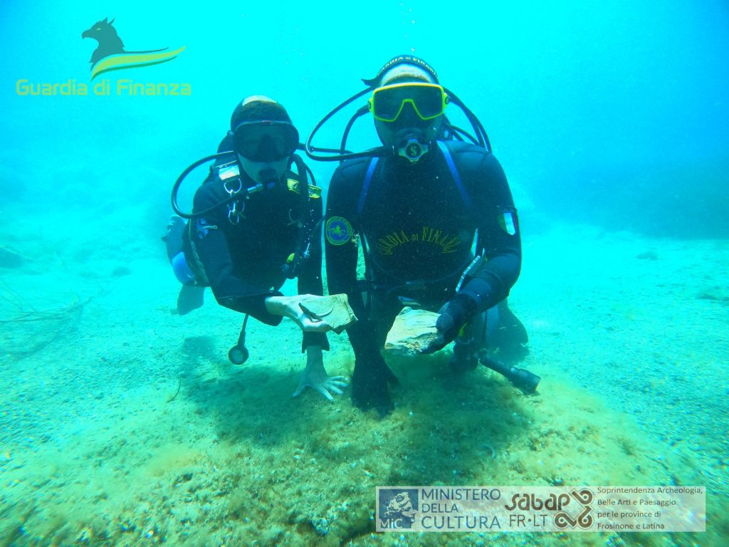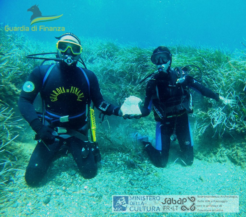 La componente subacquea della Stazione Navale di Civitavecchia in collaborazione con il Funzionario Responsabile del Servizio di Tutela Subacquea della Soprintendenza Archeologia Belle Arti e Paesaggio per le Province di Frosinone e Latina, hanno rinvenuto nelle acque dell’Isola di Ponza antistanti alle monumentali peschiere romane, le cosiddette “grotte di pilato”, delle lastre di terracotta di epoca romana.
