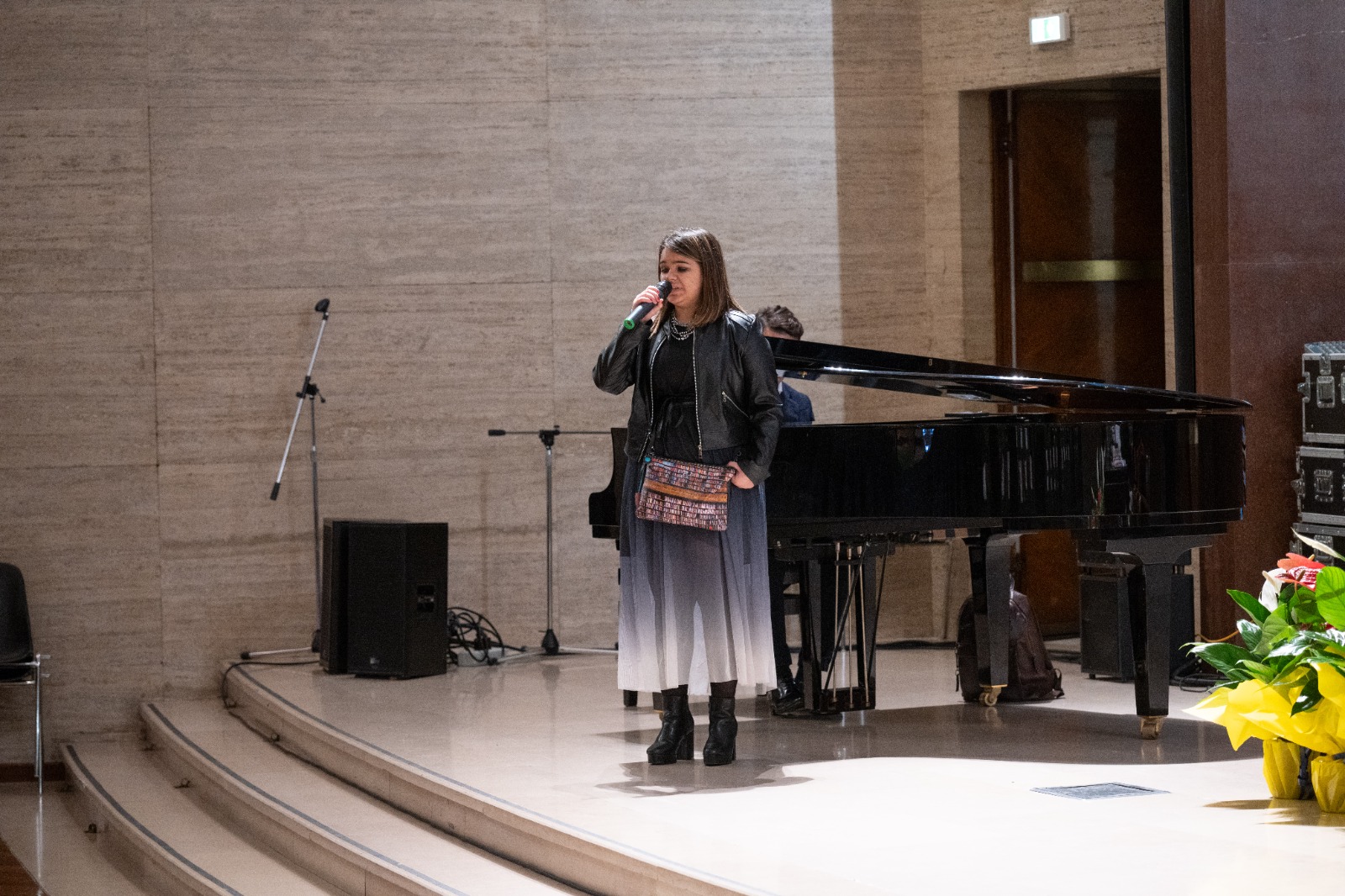Giada Lepore cantante, accompagnata al pianoforte dal maestro Luigi Giova, per il suo talento canoro, per la grande e stimata passione per la musica, che rischiara la sua vita e quella di molti;