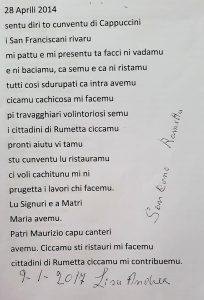 I suoi versi così trasudano di devozione, di sincero trasporto nei confronti della Madonna dei Cappuccini. Mettono a nudo quanto essa significhi per i romettesi di oggi, quelli di ieri e quelli emigrati oltreoceano, nelle lontane Americhe, o in Australia.