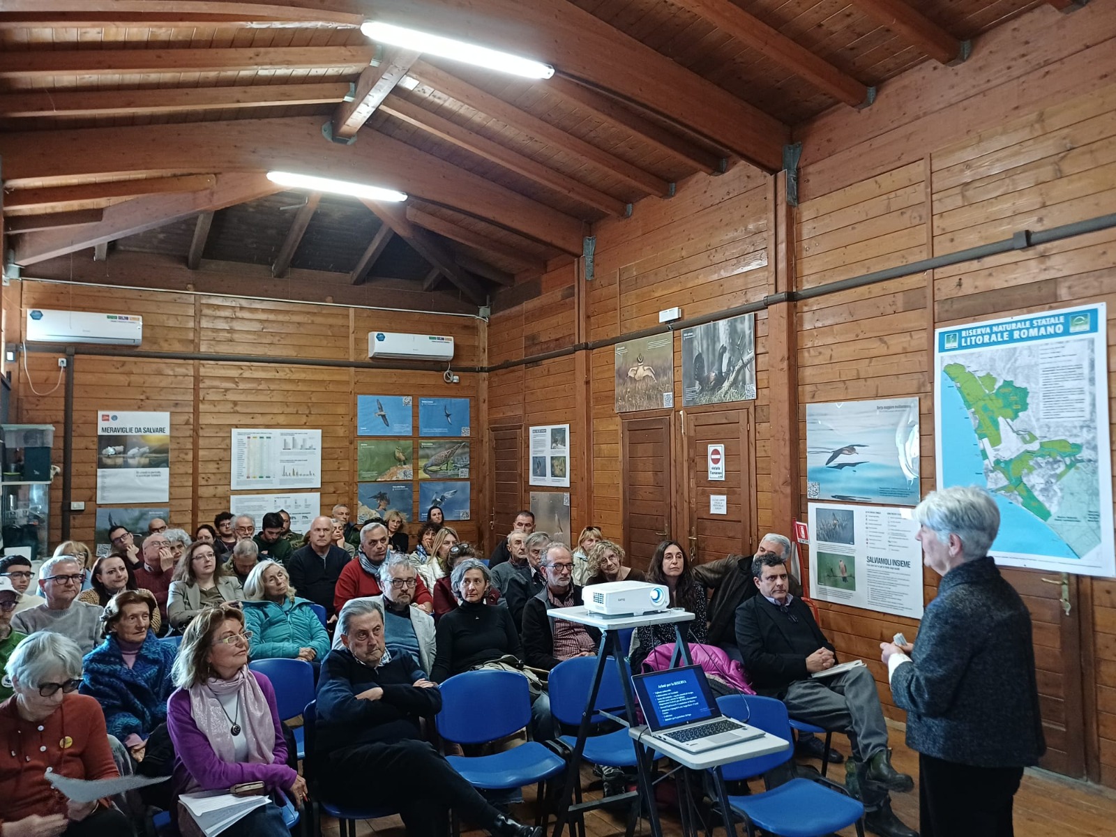 Fra gli ospiti più attesi anche Giulio Cederna per ricordare le battaglie del padre Antonio in difesa del litorale laziale. Il convegno ha presentato focus tecnici su agricoltura di qualità (Massimiliano Mattiuzzo, Biodistretto Etrusco Romano) e vigilanza del territorio (Guido Baldi, AGI), alternando momenti di approfondimento politico-ambientale (con Luca Bragalli), riflessioni su educazione e qualità della vita (con Simone Ceccobelli e Hilda Girardet), suggestioni artistiche, come le proiezioni del fotografo Giulio Ielardi e le illustrazioni di Elisabetta Mitrovic, affiancata da Antonella Arcangeli. Nei vari interventi sono stati fra l’altro messi in evidenza l’ esistenza dell’IBA Litorale (Important Bird Area) e gli obblighi assunti dai governi europei con la Nature Restoration Law per il ripristino degli habitat degradati.