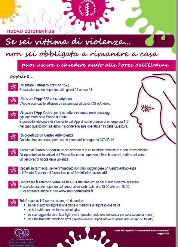 Chi è vittima di violenza può contattare i seguenti numeri telefonici e/o App dedicate e/o strutture indicate a seguire:
